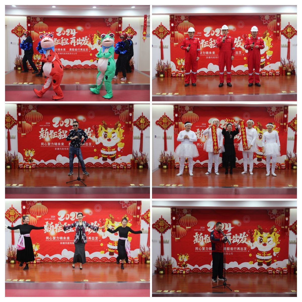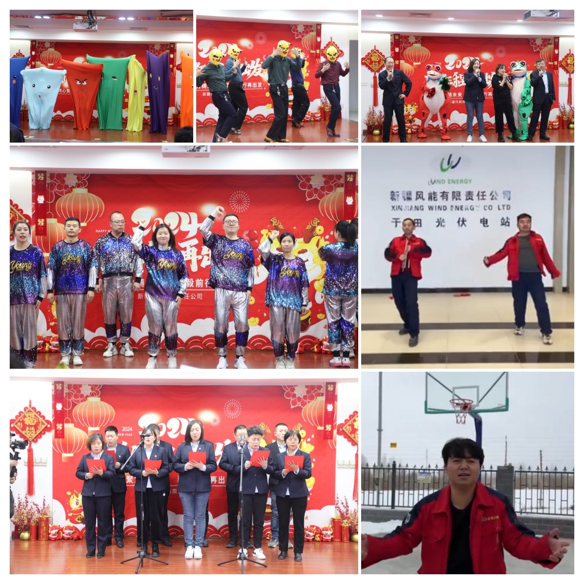 本次活動以奮發(fā)向上、期許未來為主線,在2023年工作片《馭風(fēng)前行 奮楫未來》中拉開了序幕,全體員工通過視頻,共同回顧了公司2023年主要工作成果和亮點成效?;顒又校鞑块T、場站職工自編自導(dǎo)自演的舞蹈、朗誦、歌曲、樂器演奏等多個節(jié)目精彩紛呈。參演人員多才多藝、各顯神通,歌曲《風(fēng)電郎》慷慨激昂,訴說著風(fēng)能人將熱血和青春奉獻(xiàn)給風(fēng)電事業(yè)的無怨無悔;《大風(fēng)吹》《粉紅色的回憶》《麥西來普》等節(jié)目燃炸全場,“壯漢”版《四小天鵝》令人捧腹大笑,《蛙咔咔咔》《青春不被套》《瘋狂的皮卡丘》《恭喜發(fā)財》等表演展現(xiàn)了青春的活力,《一起跳舞吧》以朝氣蓬勃的舞步和整齊劃一的隊形,展現(xiàn)了風(fēng)能人團結(jié)向上、積極進(jìn)取的精神風(fēng)貌,獨唱歌曲《貝加爾湖畔》的悠揚深情贏得了觀眾陣陣掌聲。職工互動環(huán)節(jié)《至奮斗的我們》邀請了項目建設(shè)、生產(chǎn)一線的職工們發(fā)表了感言,暢談2023與公司共同奮斗、共同拼搏的心聲。由公司領(lǐng)導(dǎo)傾情演繹的詩朗誦《龍騰向新》彰顯了新時代新征程風(fēng)能人聚焦高質(zhì)量發(fā)展,創(chuàng)新實干、團結(jié)奮進(jìn)的奉獻(xiàn)擔(dān)當(dāng)。精彩絕倫的節(jié)目將活動一次又一次推向了高潮,喝彩聲、叫好聲響成一片……