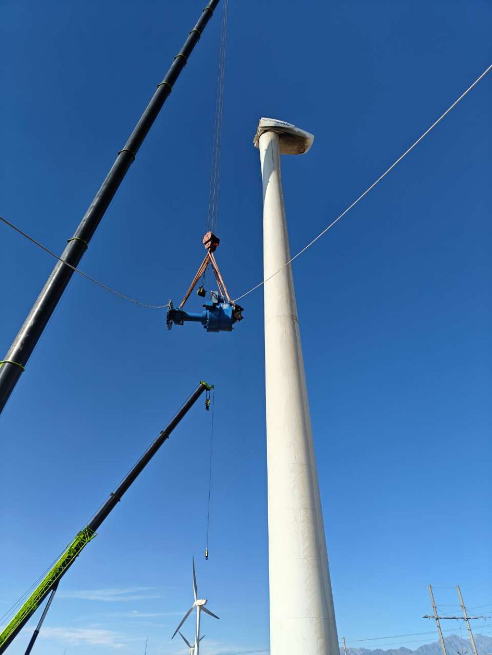 在開展吊裝工作過程中,專項小組時刻關注天氣、風速變化等情況,充分利用無風或小風“窗口期”,地面與機艙作業(yè)人員密切配合,嚴格把控齒輪箱連接油管、聯(lián)軸器、各傳感器、葉輪與主軸連接螺栓、齒輪箱彈性支撐等各關鍵環(huán)節(jié)安裝工藝,有效保障更換工作安全有序開展。經(jīng)過連續(xù)奮戰(zhàn),風電場掉隊“成員”終于再次與其他“成員”一起并肩“戰(zhàn)斗”。
