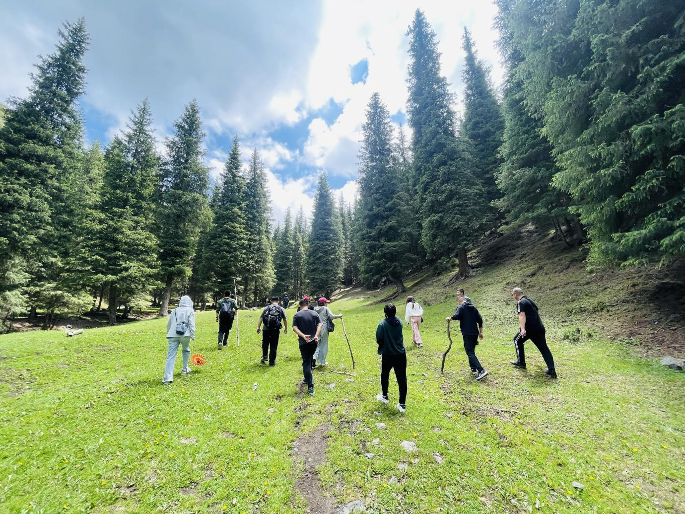 天山草場(chǎng)草色如茵、綠意盎然,如畫(huà)的風(fēng)景令人心曠神怡。大家健步走在徒步大道上,呼吸著新鮮的空氣,感受著大自然的風(fēng)光。一路上,大家邊走邊聊,時(shí)而駐足欣賞,時(shí)而選景拍照,歡歌笑語(yǔ)如影隨形。本次徒步行程近5公里,大家互相鼓勵(lì)、一往無(wú)前,經(jīng)過(guò)一個(gè)半小時(shí)的努力,終于順利抵達(dá)目的地。