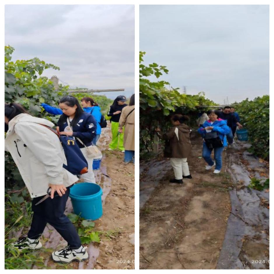 活動(dòng)第二站,來(lái)到三坪農(nóng)場(chǎng)玫瑰香葡萄采摘園。葡萄園內(nèi)一串串飽滿多汁、紫瑩瑩的葡萄掛滿了藤蔓,散發(fā)著誘人的果香。大家拿起工具井然有序的開始了采摘活動(dòng)。眾人三五成群,在田間地頭分工合作、密切配合,摘果、裝桶、搬運(yùn).....大家一邊分享采摘技巧,一邊饒有興致地暢談生活中的趣事,歡聲笑語(yǔ)在整個(gè)采摘園回蕩。