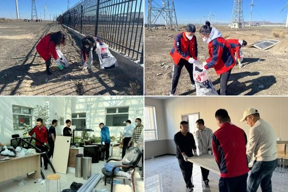 活動通知一經(jīng)發(fā)布,公司各黨支部積極響應(yīng),全體黨員對活動展現(xiàn)出極高的熱情。25日下午,公司黨員干部精神飽滿地集合出發(fā),前往達坂城風(fēng)電場。到達目的地后,所有人分成兩組,分別對場站內(nèi)部和外部進行清潔。大家分工明確、干勁十足,對場站內(nèi)部的桌椅、設(shè)備進行規(guī)整、清潔,對場站周邊的垃圾、石塊等進行全面掃除,不放過任何一個清潔死角。十月的戈壁寒風(fēng)呼呼作響,但寒冷的天氣澆不滅火熱的心,大家熱火朝天地打掃著場區(qū)的衛(wèi)生,用一次次彎腰踐行著“生態(tài)優(yōu)先、綠色發(fā)展”的理念,使場區(qū)環(huán)境煥然一新,忙碌的身影形成了一道靚麗的風(fēng)景線?;顒拥淖詈?,大家合影留念,記錄下了這一難忘的時刻。
