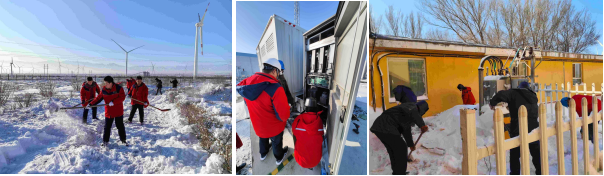 在保障設(shè)備安全的同時(shí),風(fēng)電場(chǎng)也時(shí)刻關(guān)注著員工的身心健康。他們?yōu)橐痪€(xiàn)員工配備了齊全的防寒物資,包括防寒服、棉手套、暖寶寶等保暖用品,并提供了熱騰騰的飯菜和開(kāi)水,讓員工在嚴(yán)寒中也能感受到公司的溫暖與關(guān)懷。同時(shí),風(fēng)電場(chǎng)積極組織開(kāi)展安全培訓(xùn),詳細(xì)講解極端天氣下的安全注意事項(xiàng),確保每位員工都能平安應(yīng)對(duì)并順利度過(guò)這一艱難時(shí)期。
