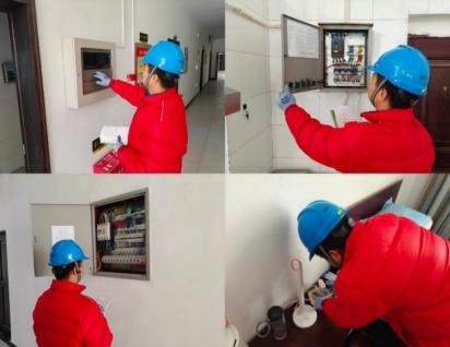 圖1 檢查小組對綜合樓內(nèi)用電設備進行檢查照片
