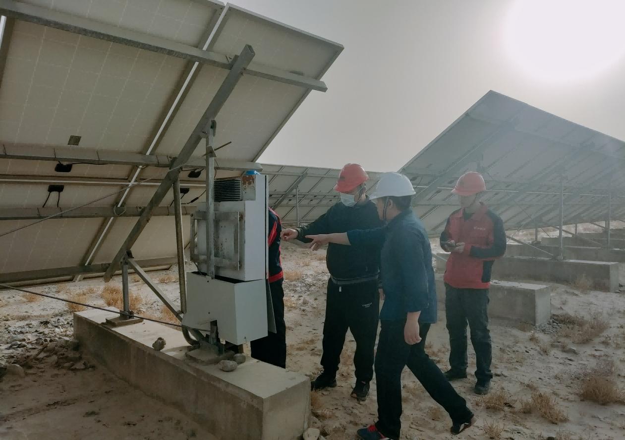 (通訊員 萬高峰/攝影 肖廣民)為進(jìn)一步加強(qiáng)場站安全生產(chǎn)管理,確保和田區(qū)域光伏電站安全穩(wěn)定運(yùn)行,近日,風(fēng)能公司黨委委員、副總經(jīng)理滿強(qiáng)及安全總監(jiān)朱偉剛帶領(lǐng)安全環(huán)保部安全檢查小組深入于田光伏電站,開展了細(xì)致全面的安全檢查工作。電站相關(guān)負(fù)責(zé)人陪檢。