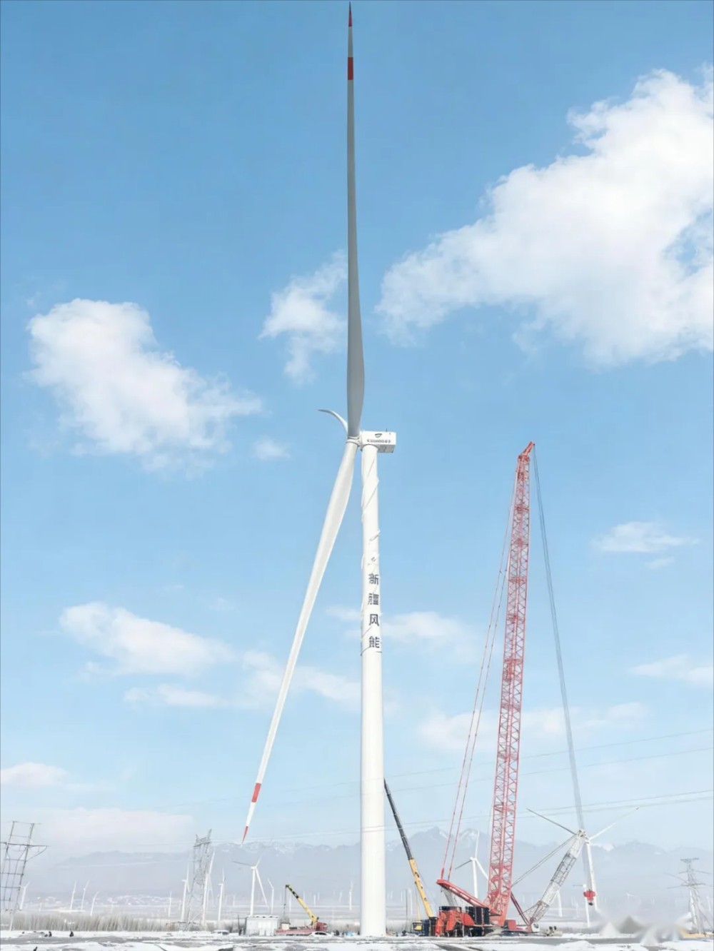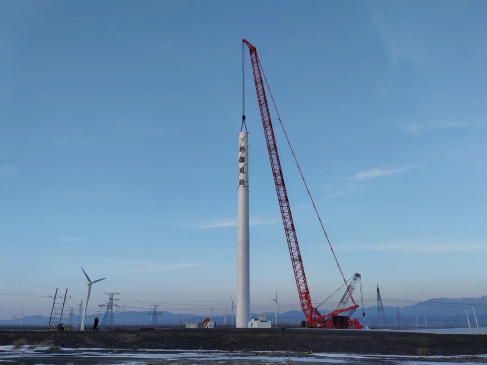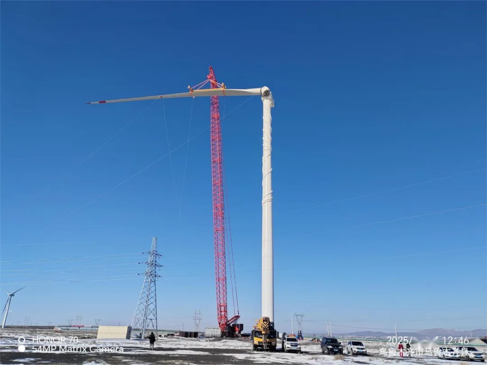 作為疆內較早建成的風電場之一,達坂城風電一場承載著區(qū)域風電產業(yè)起步與發(fā)展的厚重記憶。歷經多年運行,原有機組逐漸面臨設備老化、發(fā)電效率下滑等問題,為破解發(fā)展瓶頸,公司果斷啟動升級改造工程,即拆除低效舊機組,引進金風科技7.5兆瓦較大容量風電機組。該項目自啟動以來便面臨多重挑戰(zhàn),特別是進入冬季以來,達坂城區(qū)域風力常達5級以上,惡劣天氣不僅給施工人員帶來身體考驗,更對吊裝作業(yè)的安全性和精準度提出極高要求。加之冬季白晝時間短,有效作業(yè)窗口期大幅壓縮,進一步增加了施工難度。為確保項目推進,項目團隊提前研判區(qū)域氣候規(guī)律,制定針對性冬季施工方案,將科學組織與精細管理貫穿始終。從塔筒起吊、機艙就位到葉片精準對接,每一個環(huán)節(jié)都凝聚著建設者的智慧與堅守。同時,為確保巨大部件在風雪中平穩(wěn)吊運至預定位置,項目組全程落實風險管控措施,細化安全預案,對設備狀態(tài)、作業(yè)環(huán)境進行實時監(jiān)測,最終成功實現(xiàn)“零事故、零傷害”的安全生產目標。