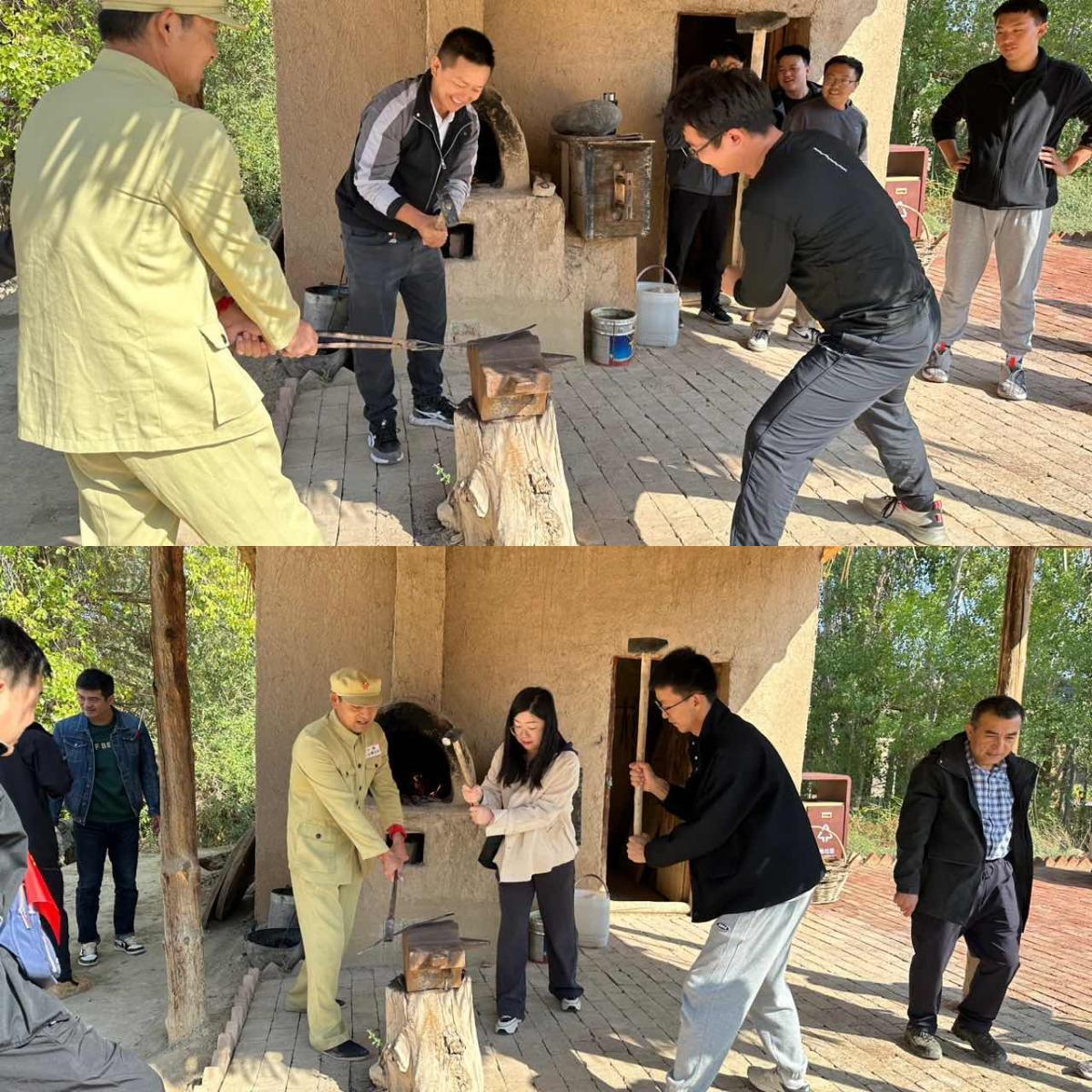 在紅色勞動(dòng)體驗(yàn)區(qū),大家在連隊(duì)老兵的指導(dǎo)下,體驗(yàn)“當(dāng)一天軍墾戰(zhàn)士”,熱火朝天地參加拉犁、磨豆腐、打鐵及打土方紅色體驗(yàn)項(xiàng)目。大家團(tuán)結(jié)協(xié)作,彼此加油鼓勵(lì),在汗水中揮灑勞動(dòng)激情,用親身感受向老一輩軍墾戰(zhàn)士致敬。